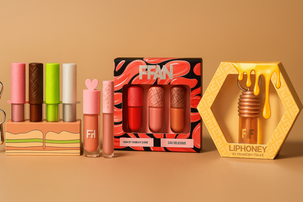 Outro ponto que não pode ser ignorado é a identidade visual. As embalagens do gloss da Fran são pensadas para chamar atenção: cores modernas, fontes marcantes e frascos com cara de produto “instagramável”. Isso faz diferença, porque o gloss deixa de ser apenas um item de maquiagem e passa a funcionar quase como um acessório de estilo dentro da bolsa.